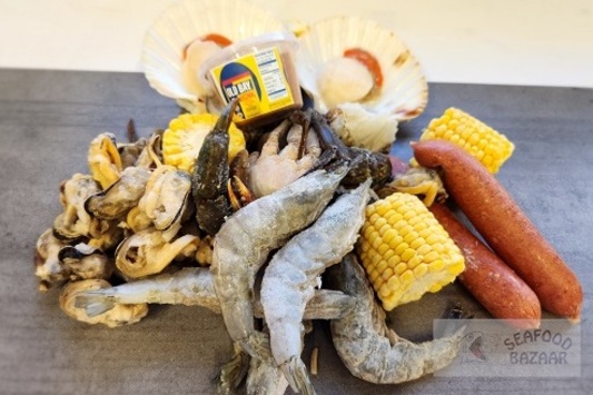 This seafood boil combines succulent prawns, juicy crab, and tender mussels. Sweet corn adds freshness, while spicy chorizo provides a smoky kick. Old Bay seasoning completes the dish with its classic spices. Just add your favorite sides for a satisfying and easy feast.